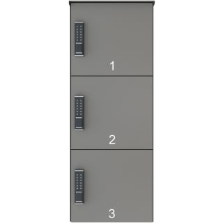 Diese Übersicht zeigt Abholstationen mit drei Paketkästen, die ihrerseits in drei verschiedenen Größen, mehreren Standardfarben und – gegen einen kleinen Aufpreis – in einer beliebigen RAL-Farbe zur Verfügung stehen. Gezeigt werden hier die vorkonfigurierten und direkt per Klick auswählbaren Modellvarianten. Wenn Sie zusätzliche Wünsche haben, beispielsweise unterschiedliche Fachgrößen oder ein Firmenlogo, dann schlägt die Stunde des Konfigurators, über den Sie auch die Anordnung der Fächer und vieles mehr bestimmen können.