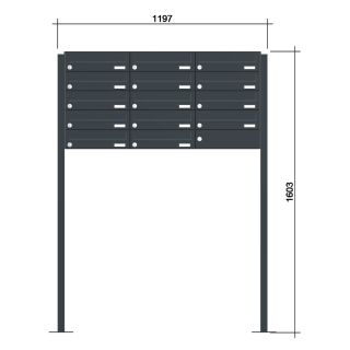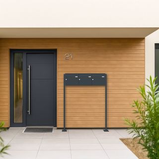 Eine freistehende (im Fachjargon: freigestellte) Briefkastenanlage hat entweder die Form einer Stele oder ist an ein Gestell montiert. In beiden Fällen ist die Grundlage (im Sinne des Wortes) ein Betonsockel, die Verbindung geschieht entweder mit Schwerlastdübeln und Schrauben oder durch das Einbetonieren von Ankern bzw. den Bodenplatten des Gestells. Freigestellte Briefkastenanlagen harmonieren designtechnisch bestens mit Klingel und Kommunikationsanlage. Sie eigenen sich aufgrund ihrer Flexibilität und ihrer repräsentativen Erscheinungsform insbesondere für Mehrparteienhäuser, Unternehmen fast jeder Größe und Praxen.