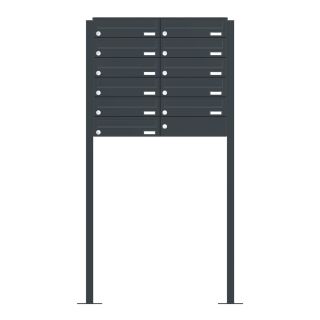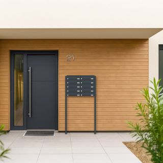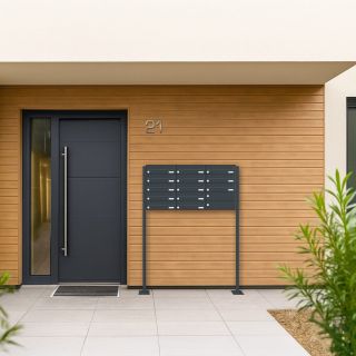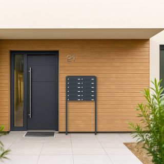 Freistehende Briefkastenanlagen sind mit einem Gestell zum Einbetonieren oder Aufschrauben ausgestattet. Die Variante zum Aufschrauben wird mit Fußplatten geliefert. Bei beiden Montagearten sind bis zu 15 Briefkästen in direkter Auswahl möglich, für die Oberflächen stehen gebürsteter Edelstahl sowie Pulverlackierung in einer RAL-Farbe Ihrer Wahl zur Verfügung. Die Kommunikation kann entweder über eine klassischen Audiosprechanlage stattfinden - oder über eine moderne Videokamera, die Komfort in den Alltag bringt und die Sicherheit verstärkt. Alle Anlagen sind mit DIN-konformen Briefkästen ausgestattet, die einen zuverlässigen Schutz für die Post bieten und sicherstellen, dass auch großformatige Sendungen in einwandfreiem Zustand ankommen.