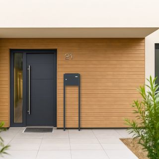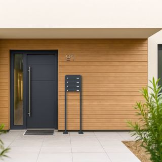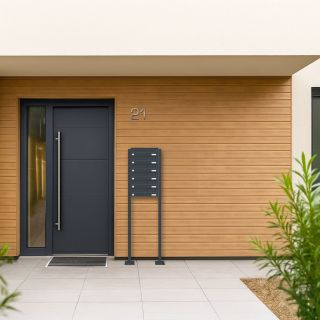 Eine vor der Haustür freistehend montierte Briefkastenanlage ist Wind und Wetter stärker ausgesetzt als eine wandmontierte Variante. Ein wesentlicher Punkt ist deshalb hochwertiges Material wie Edelstahl oder verzinktes, pulverlackiertes Stahlblech sowie die UV-Beständigkeit der Oberfläche und eventueller Beschriftungen.