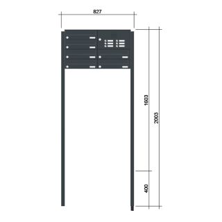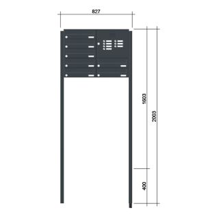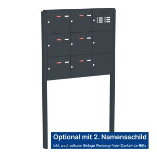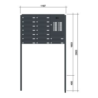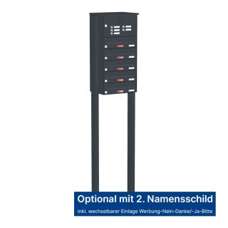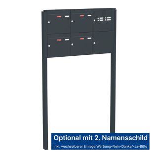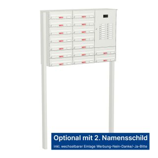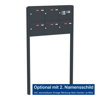 Freistehend zum Einbetonieren bedeutet fest gemauert in der Erde – oder, präziser: in einen Betonsockel eingegossen, ein Bauwerk für eine kleine Ewigkeit. Die genauso bequeme und haltbare Alternative ist die Befestigung der freistehenden Briefkastenanlage mit Schraubdübeln (Variante zum Aufschrauben).