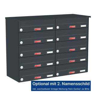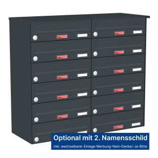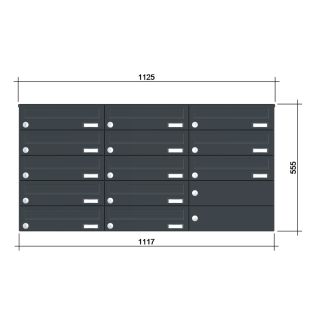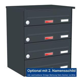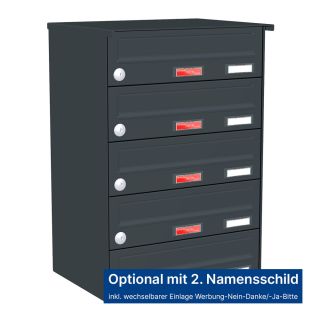 In unserem Sortiment finden Sie Wandmontage-Anlagen mit bis zu 15 Kästen – wahlweise aus hochwertigem Edelstahl oder in einer großen Farbvielfalt, passend zu Ihrer Haustür oder Fassade. Dank optionaler Video- oder Audiosprechanlagen wird nicht nur der Komfort erhöht, sondern auch die Sicherheit Ihrer Bewohner verbessert. Alle Modelle sind mit geräumigen DIN-gerechten Briefkästen ausgestattet, die Ihre Post nicht nur zuverlässig vor Witterung und Fremdzugriff schützen, sondern auch größeren Sendungen ausreichend Platz bieten.