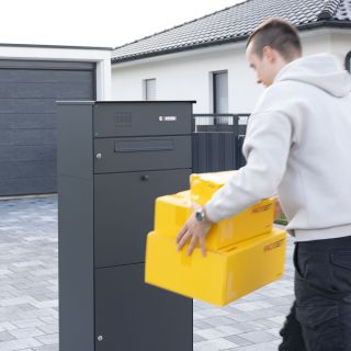 Eine eigene Paketbox ist ganz klar eine Erhöhung der Wohn- und Lebensqualität. Für Einfamilienhäuser ist sie sinnvollerweise als Stele ausgeführt, d.h. steht auf einem Sockel an der Grundstücksgrenze oder in der Nähe der Haustür. Die Vorteile sind: