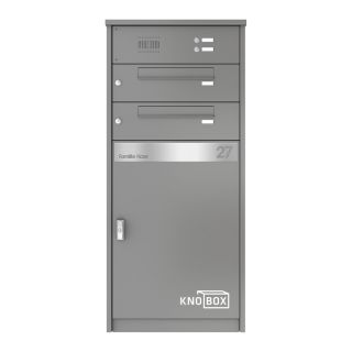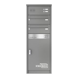KNOBLOCHKNOBLOCH Paketbox KNOBOX 14Paketbox in Graualuminium, mit zwei Briefkästen, Sprechsieb und Klingeln, freistehend in Stelenoptik958,00 €